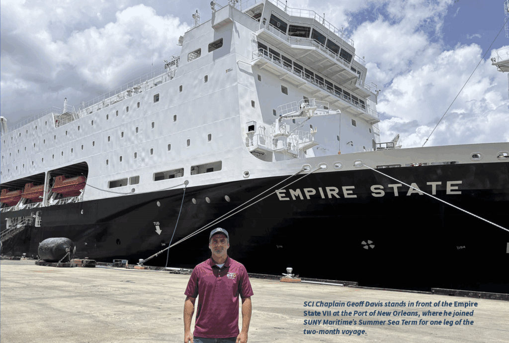 SCI responded immediately, sending a Chaplain aboard the Empire State while docked in Charleston, South Carolina, and maintaining a presence throughout the remainder of the cruise. The success of that effort laid the foundation for a continuing partnership between SCI and SUNY Maritime, now celebrating five years of pastoral connections, both mundane and sacred, forged at sea.