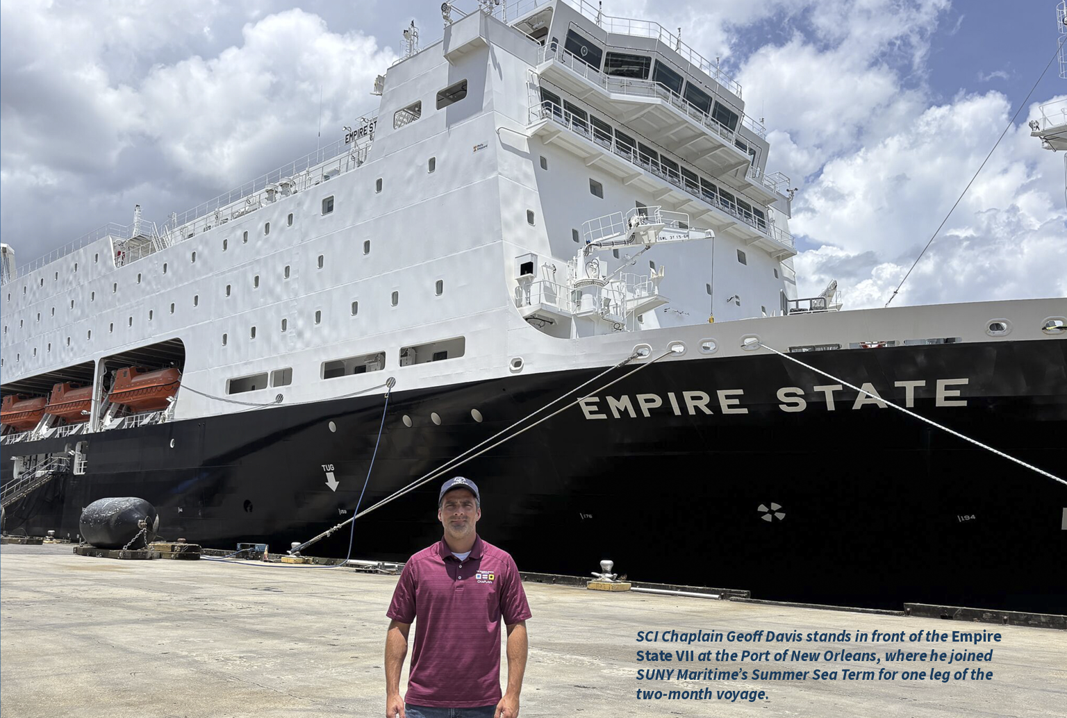 SCI responded immediately, sending a Chaplain aboard the Empire State while docked in Charleston, South Carolina, and maintaining a presence throughout the remainder of the cruise. The success of that effort laid the foundation for a continuing partnership between SCI and SUNY Maritime, now celebrating five years of pastoral connections, both mundane and sacred, forged at sea.